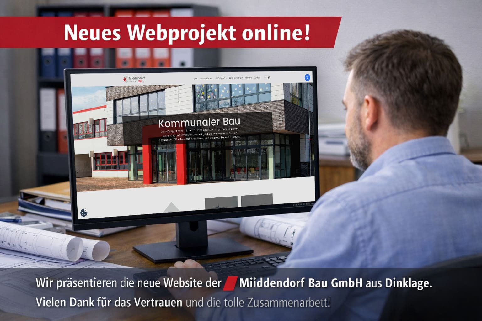 Wir bedanken uns herzlich für das Vertrauen, die angenehme Zusammenarbeit und dieses gelungene Projekt. Wir wünschen der Middendorf Bau GmbH viel Erfolg mit dem neuen Online-Auftritt.